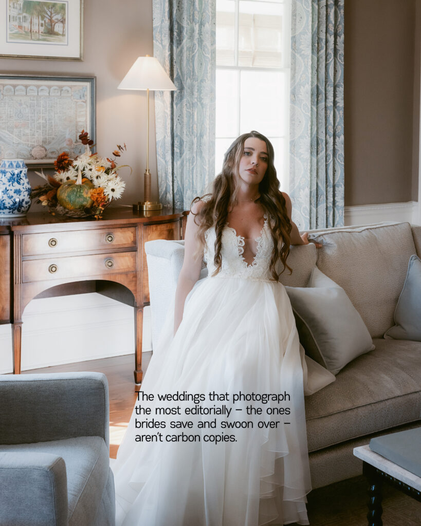 Brides are craving an editorial look. They are wanting elevated, effortless, timeless images. But many are also feeling overwhelmed by the expectation to recreate a moment that was never theirs to begin with. Is it your wedding day or are you creating a styled photoshoot with bridal clothing.