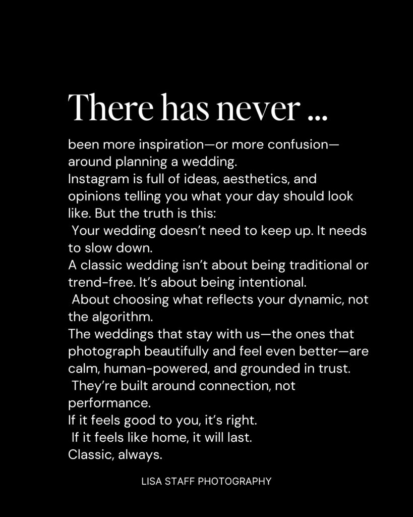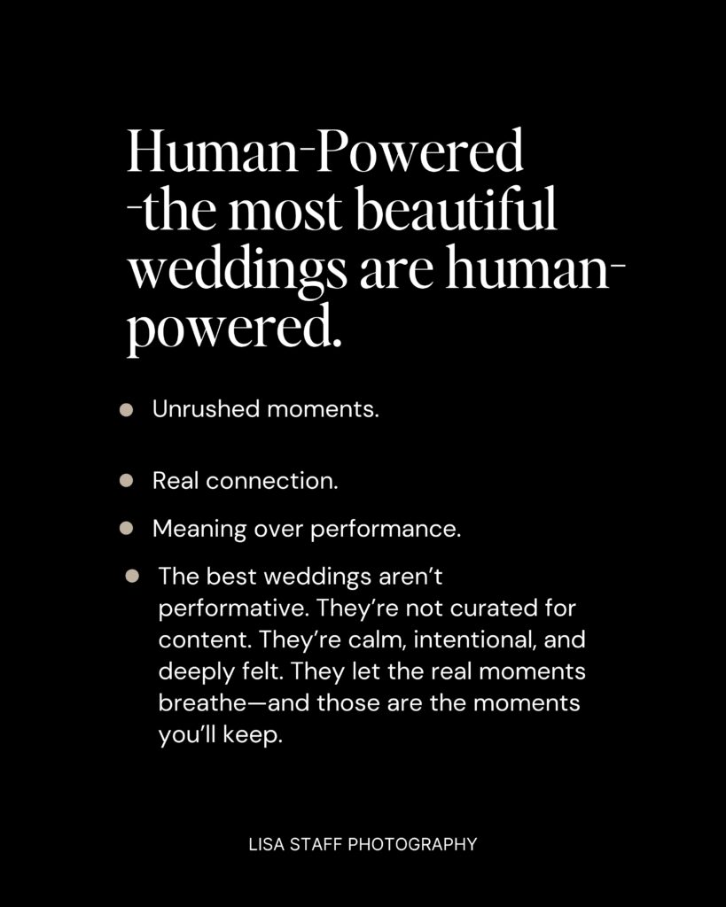 The best weddings aren’t performative. They’re not curated for content. They’re calm, intentional, and deeply felt. They let the real moments breathe—and those are the moments you’ll keep.